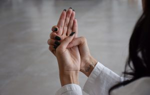 پشت دست چپ را داخل کف دست راست قرار دهید. شست دست راست داخل دست چپ جا میگیرد و شست دست چپ روی آن مینشینید. انگشتهای دست راست به دور دست چپ میپیچند و آن را به نرمی نگه میدارند. نگه داشتن دست به این حالت آرامش و احساس امنیت می بخشد. این مودرا را روی مرکز قلب قرار دهید.