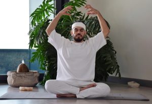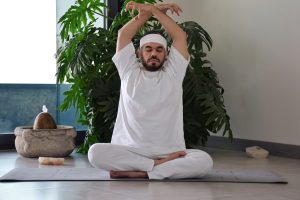 ۱. چهارزانو بنشینید. دست‌ها را به طرفین باز کنید. پنجه‌ها را به شکل چنگال شیر منقبض کنید. به تناوب با دست‌ها بالای سر ضربدر بزنید، و دوباره به حالت باز برگردانید. مطمئن شوید در بازگشت، دست‌ها به موازات زمین باز باشند، نه پایین‌تر و نه بالاتر. چنگال‌ها را منقبض نگه بدارید. با قدرت و ریتم حرکت کنید. نفس آتشین انجام دهید. هر یک دم و بازدم را با یک حرکت هماهنگ کنید.